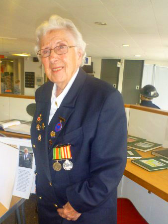 This summer, 2014, we visited Portsmouth’s D-Day Museum to view the recently-completed Overlord Tapestry that commemorates D-Day. I met Mary Turner Verrier, a 91-year-old Red Cross Nurse and veteran of Dieppe, Dunkirk and D-Day. Mary treated casualties of war, both civilians and servicemen, primarily for flash burns.
