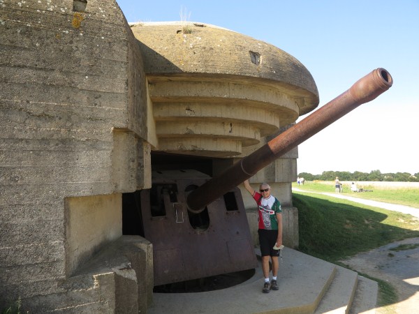 Longues-sur-Mer, the German Battery, still houses a 150-millimeter gun and four bunkers. Martine conducts the tour of the only battery to retain its original naval gun. These powerful long-range guns could have devastated had they functioned properly. The four guns were up, ready and firing over the 20-kilometer range, but a sand dune blocked the telescopic view for the shiny new range-finder still in its box. Without a range-finder, the guns fired blindly like big barking dogs, until direct hits silenced two of them just before the surrender.
