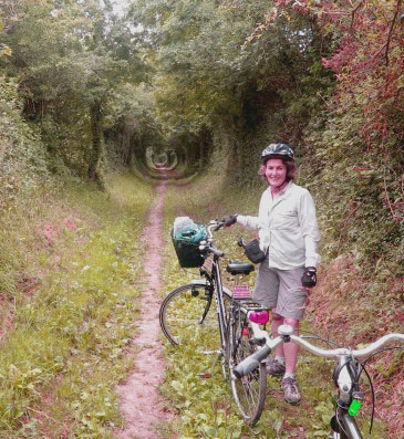 A yearning to be in the open air brings us to Velos Location: Veronique and Chretien rent bikes for eight hours at 16 Euros apiece. We’re transported to countryside where we hear the farmer’s tractor mowing hay, or are those tanks approaching? The trees that line the roads look mature, but aren’t they uniformly pushing the seventy years since peace was brokered? In 1944, trees provided fuel or defensive barriers on low-tide beaches, and their removal meant less shelter for an enemy. Today, those same trees flicker from shadow to light like newsreels, transmitting ticker tape noises to our spokes, and crank us forward.
