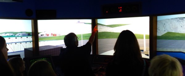 Captain Rod Dunbar mans the simulated electronic navigation controls in the (simulated) port of Dover. In our ten minutes, we see rain, snow, wave and fog and leave feeling the (simulated) movement.