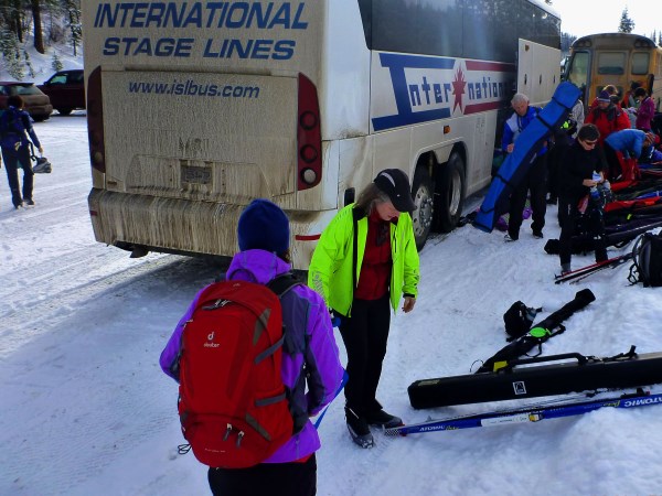 A full International Stage Lines busload of Vancouver Skiers with Orville at the helm left Vancouver’s mild, foggy condition for the snowy interior on January 9, 2015.