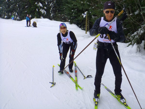 Sunday’s event was the Sun Peaks Nordic Club annual Kookaburra Loppet. Vancouver Skiers, Ross Nichol and Roz Scarnell (R-squared) did the 30-kilometer event.