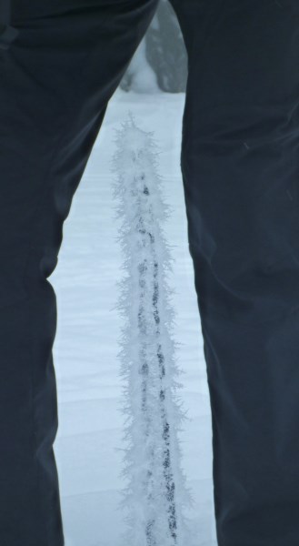 Up early, Vancouver Skiers enjoy the Comfort Inn’s breakfast buffet. Salmon Arm skies are overcast, and as we climb, it’s a bit foggy, but this is the magical temperature for white hoarfrost. Water vapour freezes into furry needles of ice that crystallize onto twig, needle, grass and even icicle ‘trees’.