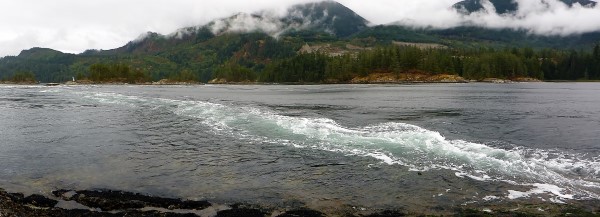 Fueled on west coast fare, there’s ample time for the six-to-eight-kilometer round-trip hike along a gently-rolling path to Skookumchuck Narrows. The ebb-tide view heightens the dazzle of a two-meter drop off. The whirlpools and standing waves swirl our senses.